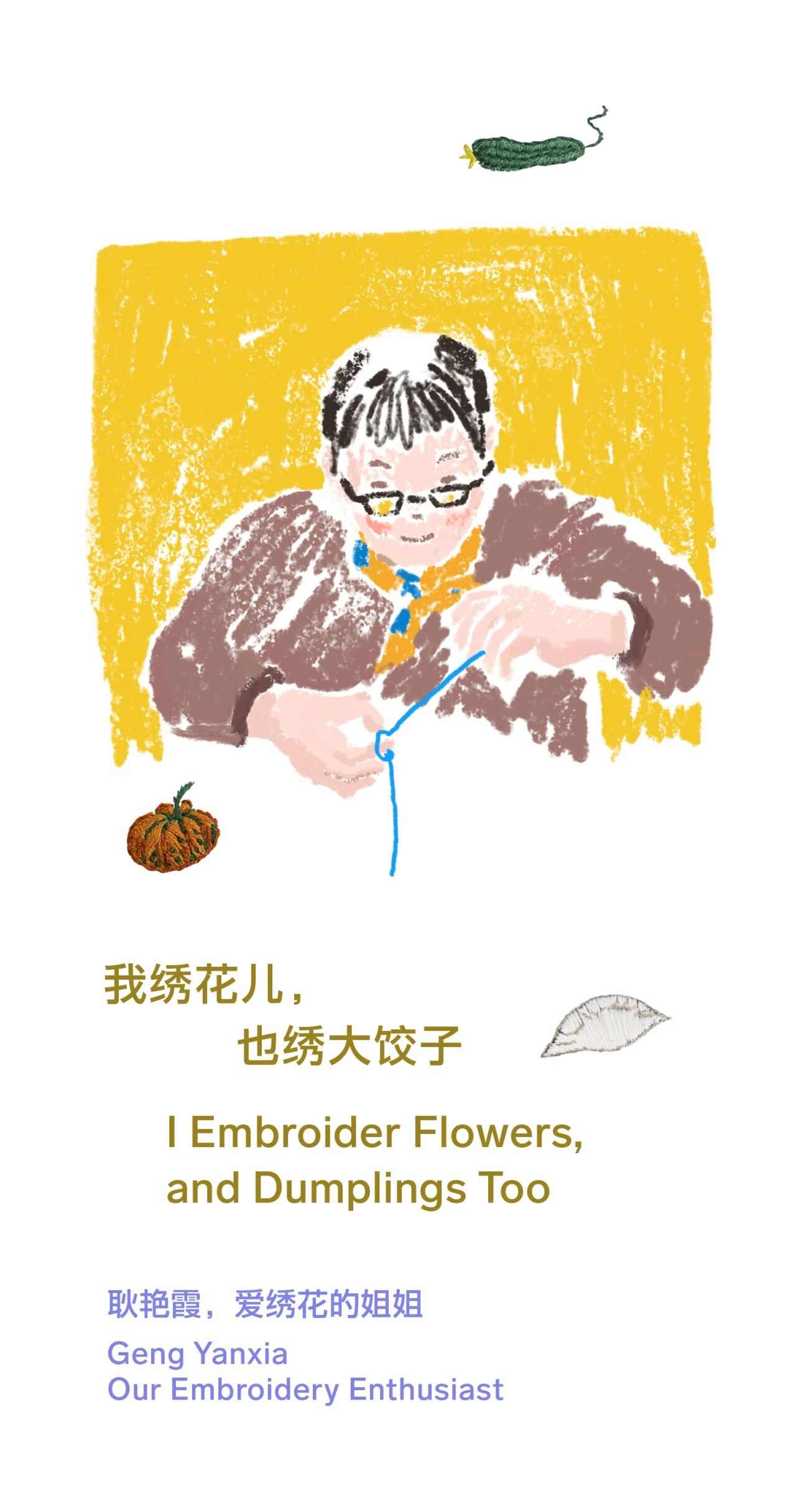 家边的香椿树、端午的粽子、家里的暖壶,生活里的每一个小物件都是耿大姐的刺绣灵感,就这样,姐姐的故事留在了每一件衣服上。